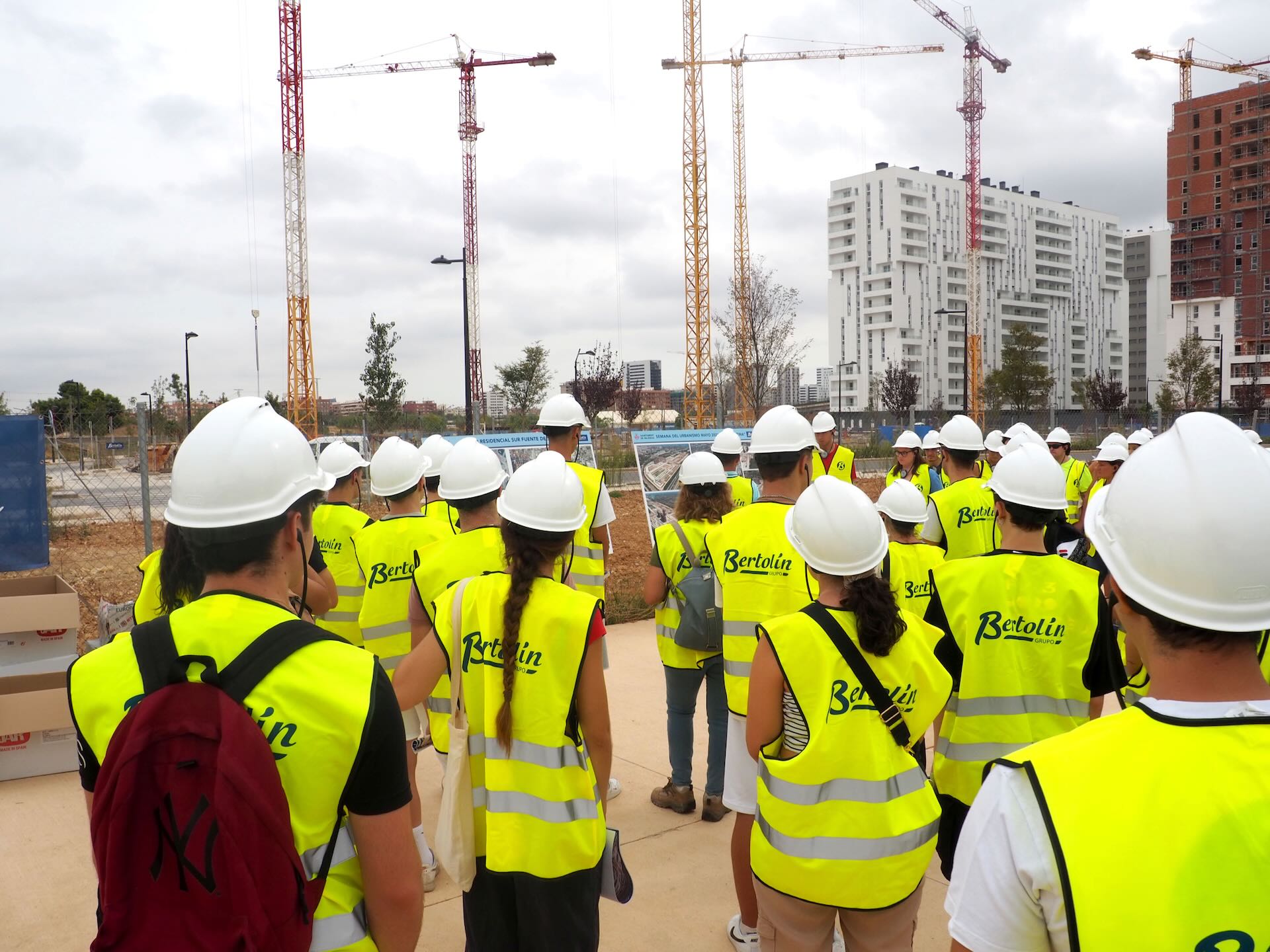 Los estudiantes del primer curso del Grado de Arquitectura Técnica de la Escuela Técnica Superior de Ingeniería de Edificación de la Universidad Politécnica de Valencia vivieron una experiencia única en el arranque del nuevo curso. En el marco de la #CátedraBertolín, realizaron una emocionante visita a la obra en curso del nuevo barrio de Turianova.